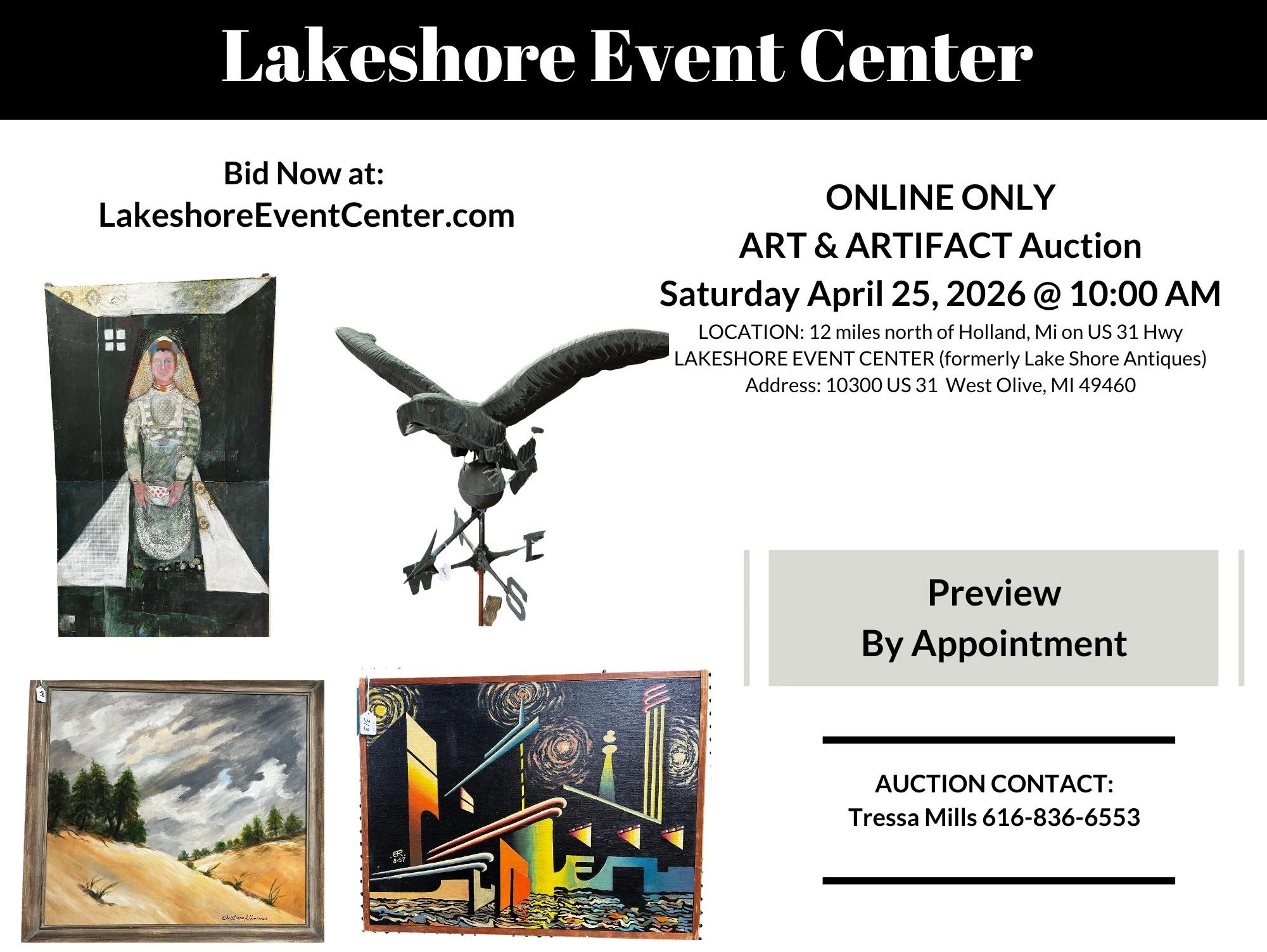 Located along the shores of Lake Michigan we are known as the "Art Coast of Michigan." We have a love and appreciation of all the inspiring and creative talent. We are always looking for Traditional, Modern or Contemporary Art for our Auction Events.
